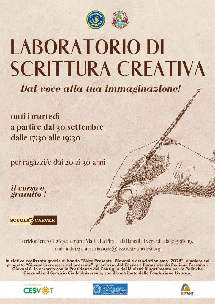 - laboratorio di scrittura creativa per ragazzi/e dai 20 ai 30 anni (in collaborazione con la Scuola Carver di Livorno). Si terrà tutti i martedì, a partire dal 30 settembre, dalle 17.30 alle 19.30.
